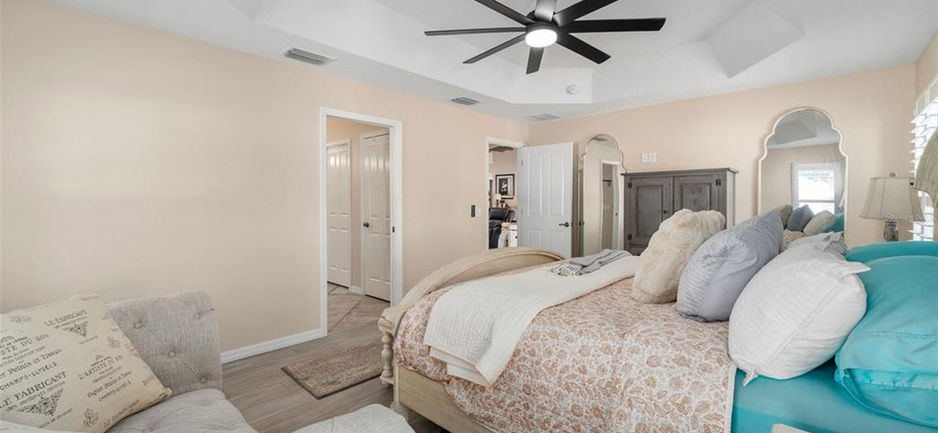 Fully Updated Pool Home in Bison Valley – Golf Cart Access! Welcome to this beautifully upgraded 4 bedroom, 2 bathroom pool home located in the desirable family neighborhood of Bison Valley. Thoughtfully updated throughout, this home offers the perfect blend of upgraded features, comfort, and outdoor living. Step inside to an inviting open floor plan with high ceilings, tile flooring, and a stunning shiplap feature wall in the living room. The kitchen features new appliances, granite countertops, ample cabinetry, and a seamless flow for everyday living and entertaining. All new fixtures and ceiling fans have been installed throughout the home, along with a new modern sliding glass door shade for added style and functionality. The spacious primary suite includes a walk-in closet with California Closets custom organization, dual vanities, and a walk-in shower. Three additional bedrooms provide flexible space for family, guests, or a home office and feature new flooring and generous closet space. Plantation shutters add timeless character and privacy throughout. Major system updates provide peace of mind, including a new roof (2025), new HVAC system (2025) with smart thermostat, and upgraded irrigation with new sod (2025) for fresh curb appeal. Step outside to your private backyard retreat featuring a sparkling pool that has been remarcited and new tile (2025), a new pool heater/heat pump (2025), and new screen (2025) on the enclosure. The covered lanai and garage both feature durable Shark Coating flooring, enhancing both appearance and longevity. A fire pit and beautifully maintained landscaping complete this outdoor experience, perfect for year round Florida living. Located in a peaceful neighborhood with golf cart access, this home is minutes from local schools, shopping, dining, recreational facilities, everything The Villages, and major highways for easy commuting. Move-in ready with extensive updates; this home truly stands out.