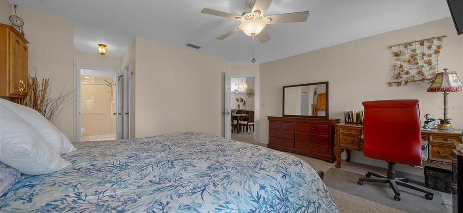 This this beautifully maintained 2-bedroom, 2-bath home is nestled in the heart of the vibrant 55+ gated community of Spruce Creek South in Summerfield, FL. This expanded Palm III model offers a spacious and inviting layout with vaulted ceilings, abundant natural light, and elegant crown molding accents throughout. The open-concept living and dining areas flow seamlessly into a bright, eat-in kitchen featuring ample cabinetry, pull-out drawers, and a pantry for effortless storage. Just off the living space, an enclosed sunroom with acrylic windows provides the perfect year-round spot to relax or entertain. The primary suite offers a peaceful retreat with a walk-in closet, additional storage, and a private bath with walk-in shower, while the guest bedroom also includes its own walk-in closet. A dedicated laundry room with utility sink and storage adds everyday convenience, and the oversized 2-car garage offers even more functionality. Outside, mature landscaping and a 2019 roof provide peace of mind and charming curb appeal. Residents of Spruce Creek South enjoy access to a clubhouse, fitness center, pool, tennis, pickleball, golf cart trails, and more — all with a low monthly HOA. Whether you're looking to unwind or stay active, this move-in-ready home delivers the perfect blend of comfort, style, and Florida lifestyle living.